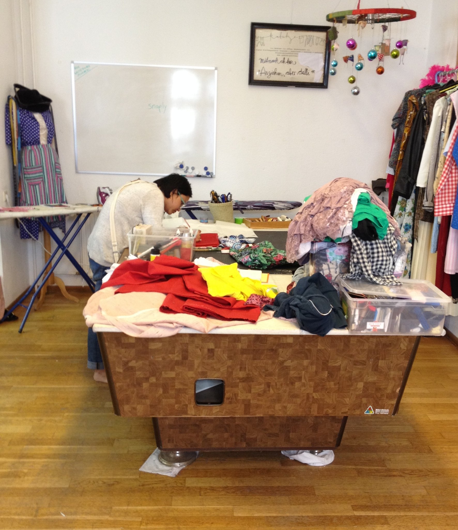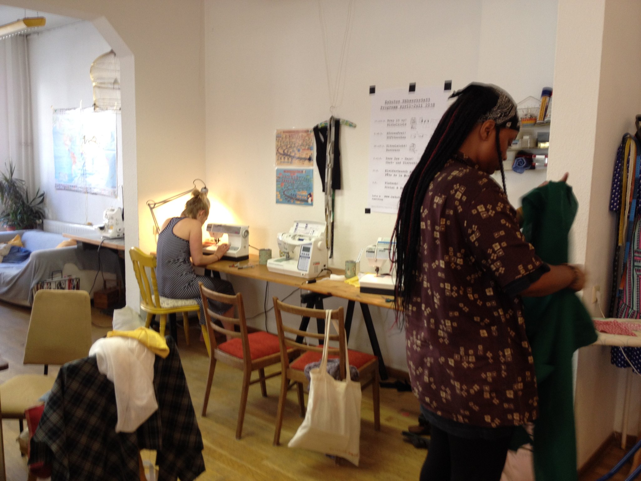 Im Rahmen des Greifswald International Students Festival haben wir einen einwöchigen Workshop zum Thema Kleidung ("You are what you wear?") gegeben. Es ging darum wo Kleidung unter welchen Arbeitsbedingungen produziert wird und auch was wir daran ändern könnten. Helen Gimber von der Kampagne für saubere Kleidung unterstützte uns mit ihrem umfangreichen Hintergrundwissen. An den letzten beiden Tagen wurden die Teilnehmer_innen aus Belarus, England, dem Iran und dem Oman selbst kreativ und nähten Beutel, Taschen, Aufnäher-Collagen und Halstücher aus gebrauchten Textilien.
